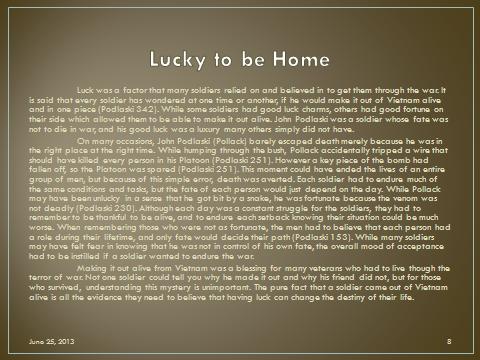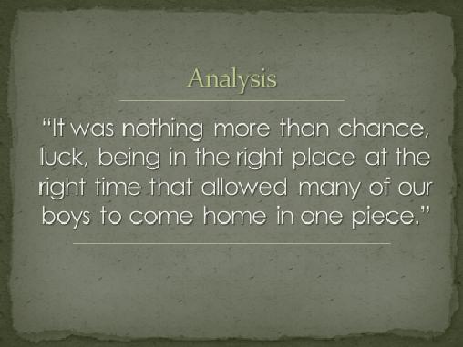 In a three paragraph essay explain this statement: It was nothing more than chance, luck, being in the right place at the right time that allowed many of our boys to come home in one piece.