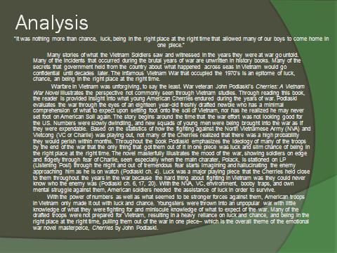 Objective: Create an illustrative and narrative power point that helps you as the reader to analyze the book Cherries.