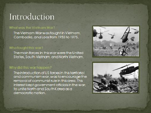 Who is my audience: Create this power point for a reader that does not know about the Vietnam War.