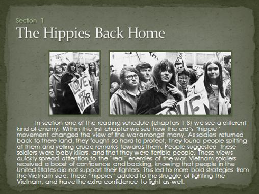“This spring when my students read the book, it was assigned over spring break. I gave my students almost a month and a half to finish it but many said they read over the one week during spring break because it was so good.” Danelle Rivera created the following presentation for her history classes to launch the Vietnam War era…you’ll note that the last two slides are dedicated to her father, David.