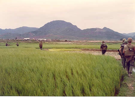 and 12 foot elephant grass. It is weeks of 120 degree heat and 95% humidity, or drought and monsoon and flood. It is a country of two seasons, hot and dry, and hot and wet. Or mixed, for as one GI complained, “This is the only place in the world where you can be shoulder deep in mud and have dust blowing in your face at the same time”.