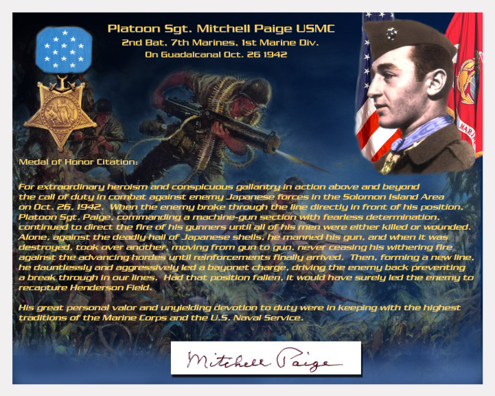 He was a combat veteran of World War II. Reason enough to honor him. But this Marine was a little different. This Marine was Mitchell Paige.It’s hard today to envision — or, for the dwindling few, to remember — what the world looked like on 26 Oct 1942.