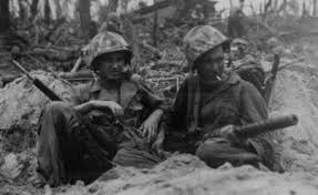 But by the time the night was over, The Japanese 29th Infantry Regiment has lost 553 killed or missing and 479 wounded among its 2,554 men, historian David Lippman reports. The Japanese 16th Regiment’s losses are uncounted, but the [US] 164th’s burial parties handled 975 Japanese bodies. … The American estimate of 2,200 Japanese dead is probably too low. Among the 90 American dead and seriously wounded that night were all the men in Mitchell Paige’s platoon; every one.
