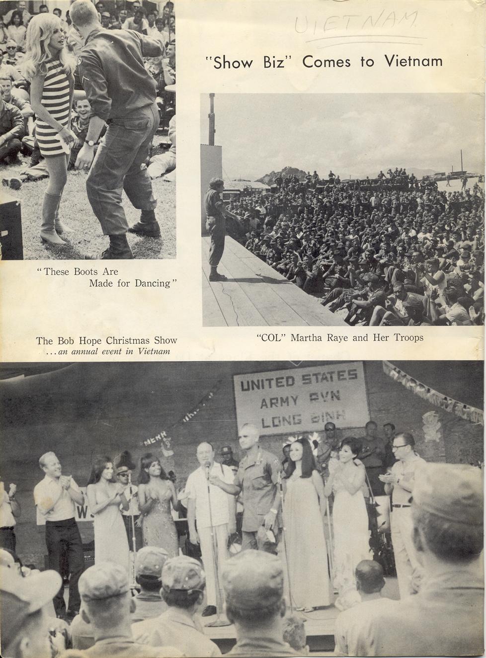 Entertainment was plentiful throughout Vietnam – touring bands usually played in the rear-area EM / NCO / Officer clubs and sometimes visited soldiers in the remote firebases. The most famous and most sought after of all shows was the Bob Hope Christmas Special, which played in several of the larger bases over the Christmas holiday period. However, these shows filled quickly and normally by those stationed on the base. Those of us in remote firebases or out in the bush couldn’t leave our positions to attend and had to settle for listening to it on the radio.