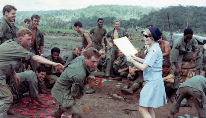 I’ve copied several pages from the magazine that I thought would be of equal interest to all Vietnam Veterans…Remember the “Donut Dollies”? They were American Red Cross employees, who went to forward areas, and on some bases, operated Red Cross Centers, similar to Service Clubs offering recording studios to listen and record cassette tapes from home, participate in BINGO, trivia or other “games” so us soldiers could forget about the war for a short period of time. The Service Clubs were staffed by DOD/NAF civilians, who worked only on bases (with rare trips forward). Special Services also operated craft shops where guys could do their own film developing, make jewelry, etc., in addition to running the libraries and being responsible for all of the books that were sent out to firebases and LZs. Donut Dollies were the most recognized women, after the nurses, because they had so much exposure. Unfortunately, it became the norm to refer to all American women with USO, Special Services and Red Cross to become referred to as “Donut Dollies”.