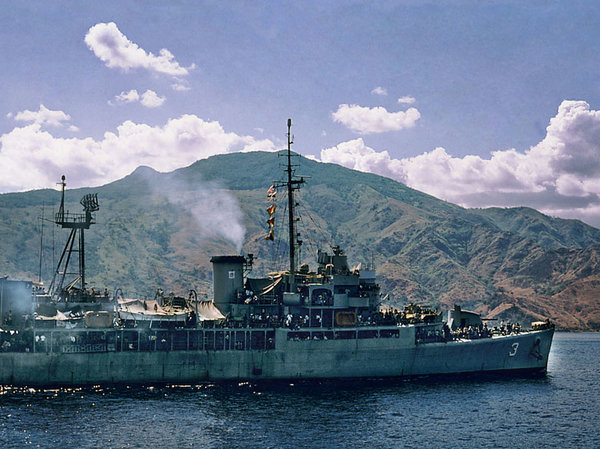 As the flotilla headed out to sea, on the way to the Philippines, other Navy ships came in and out of the escort, according to Herman. Among those other ships were the USS Mobile, USS Tuscaloosa, USS Barbour County, USS Deliver and USS Abnaki.