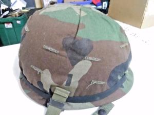 The helmet ensemble is a two-piece design – one size fits all – where a fiberglass inner liner with straps fit snugly into the steel pot; the straps are adjustable to ensure a snug fit. Most soldiers in basic training wore only the inner liner with masking tape across the back with the last name of the soldier written on it. Nobody dared to write anything else on them.