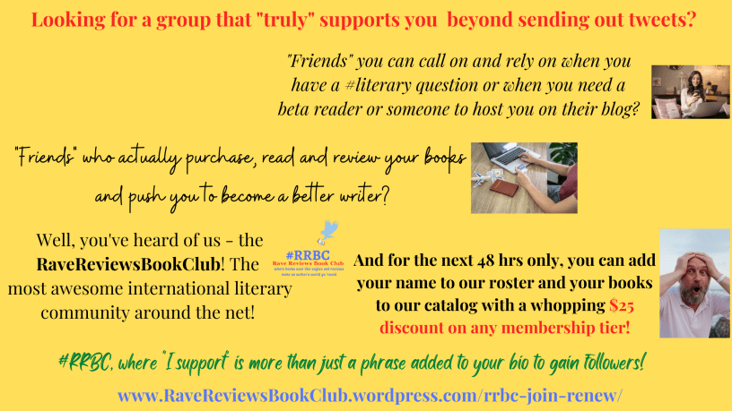 RRBC is such a fun place to belong! We’re not just about books, you know, we’re also about making beneficial connections and lifelong friendships! Even if you are not an author, this is also a great club for just Readers.