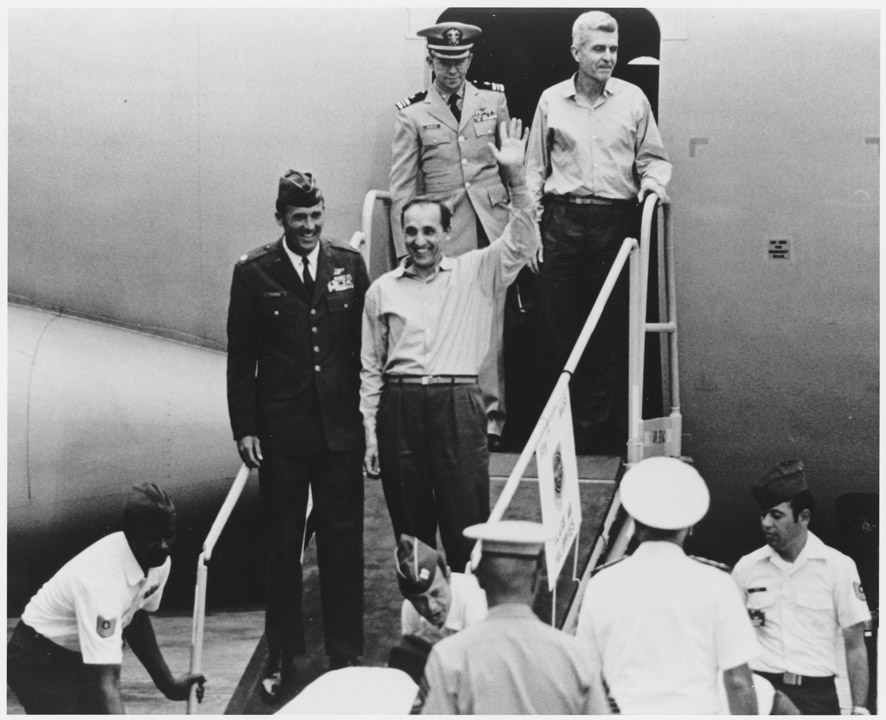 Swindle got the chance to thank Stockdale personally in February 1973, when the POWs learned that they would soon be released. The two POWs finally met because the prison rules were relaxed somewhat after Ho’s death in 1969, and authorities allowed the POWs to mingle and talk to one another openly. ‘A silver-gray-haired man came limping over to meet me and said hello. I told him I was honored to meet him, but was feeling low having just given a [forced] confession. I told him, ‘When you moved into that cell, you saved my life by yourself and your leadership.”
