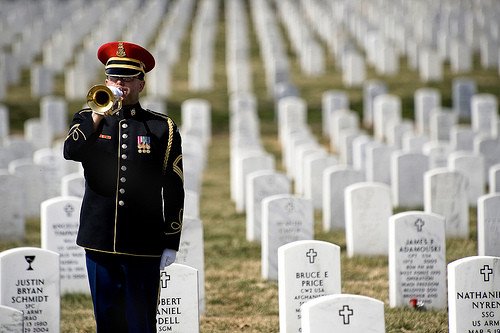 The muffled, official, and rehearsed words are spoken by a chaplain, a few commands barked sharply in the near distance, a sudden startling volley of rifle fire, and then the sweet part, Taps. A song that has stirred thousands of emotions for generations. The unmistakable sound of a hero called home. A song that means so many things to each ear that hears it. And then, silence. Peace.
