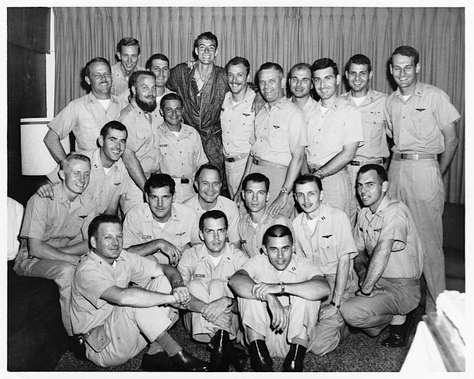 Dieter Dengler with his squadron mates from VA-145 in the admiral’s stateroom aboard RANGER, July 22, 1966. COURTESY OF BRUCE HENDERSON.