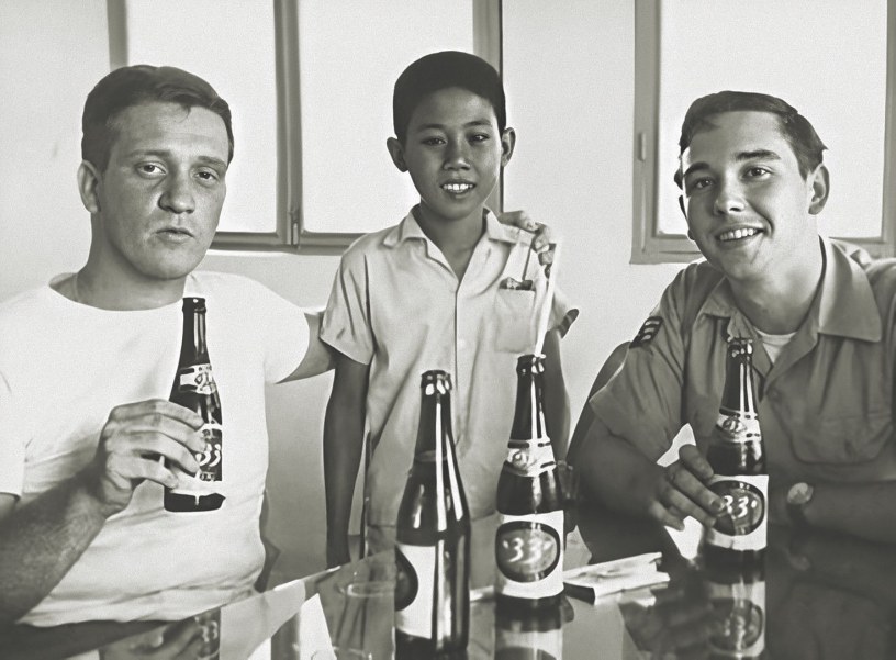 My time in Vietnam was from 1965 to 1970, twenty-two months in the Army (Saigon-Nha Trang-Pleiku-Saigon), and the rest of the time as a contractor in Saigon. I have drunk more than my fair share of Bamouiba, which translates to “33.” In the summer of ’65, we usually had no American beer at Camp Holloway and would pay the Mamasans to bring 33 and Beer LaRue to us.