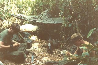 At one location we built a hooch that was right on the edge of the fire support base. Above our location was an ARVIN base on top of a hill.