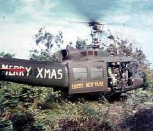 The rest of the day was more of the same, only more satisfying. When the grunts in the field saw us circling with Santa, who was tossing candy and goodies out of the cockpit, it was a sight to behold. We had guys run up just to touch Santa’s sleeve, yell a huge ‘Thank you’ over the roar of the Huey and, believe it or not, scramble like crazy for the candy just like kids back home at the annual Christmas parade.