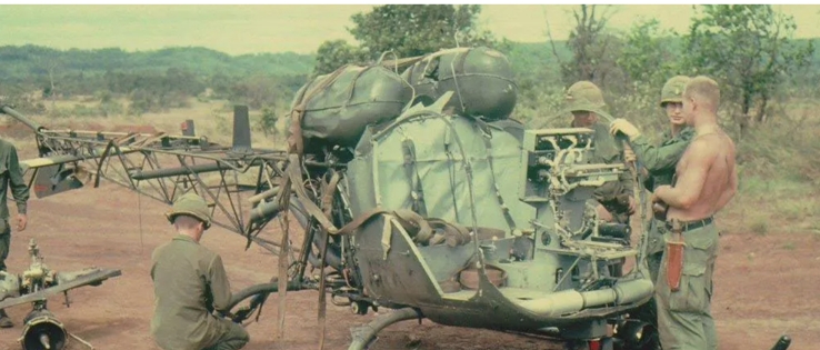 A bird is recovered and returned to its unit after being shot down in Vietnam. Photo courtesy of the author.
